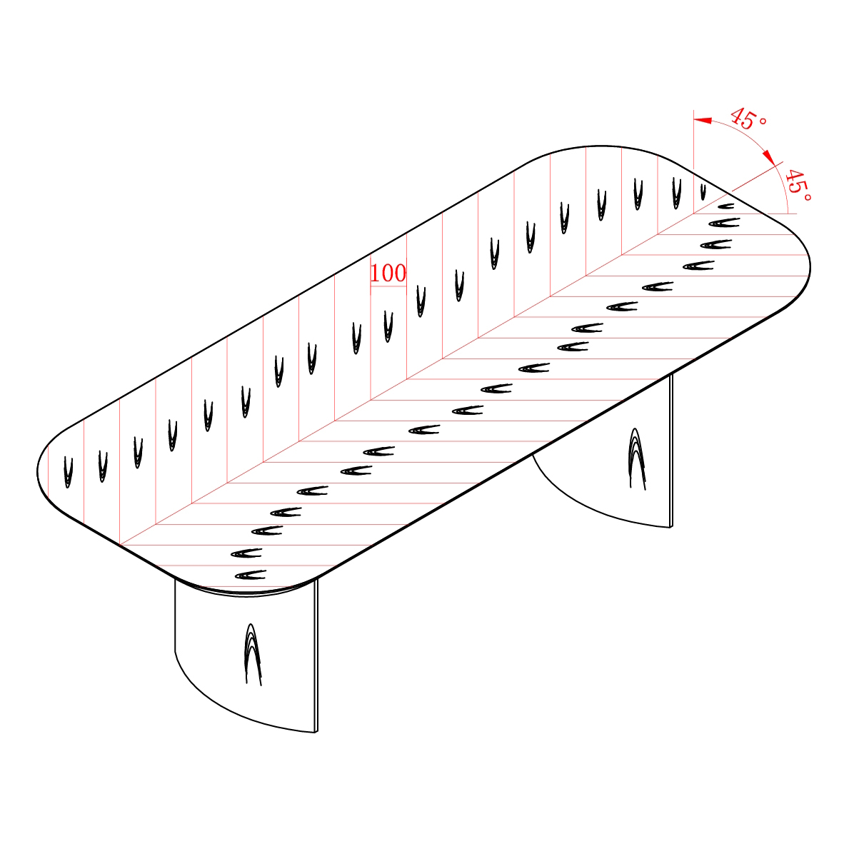 Форма столешницы - мягкий квадрат делает стол максимально эргономичным и безопасным. Ноги в форме лодки придают столу еще более плавных форм.