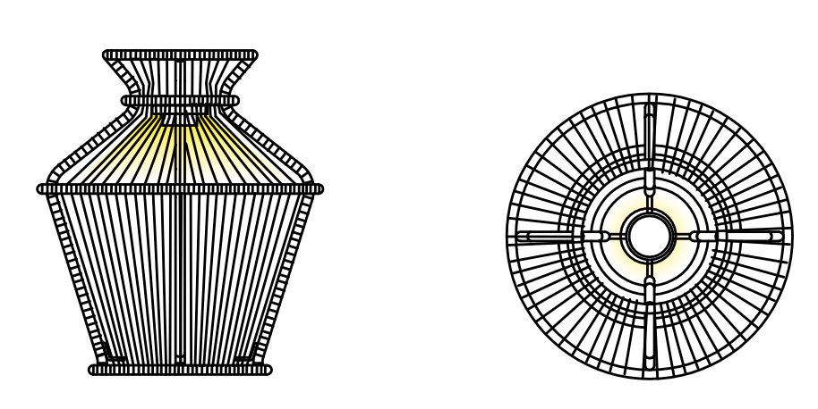 Светильник имеет алюминиевую структуру с порошковым покрытием. Декорирован красивым вертикальным плетением. Все материалы прекрасно отводят влагу, что делает изделие подходящим для использования на открытом воздухе.