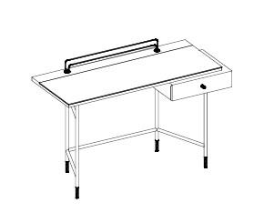 Столик оснащен держателям для хранения бумаг и выдвижным ящиком.