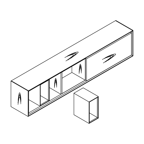 С правой стороны у подвесного модуля - дверка, поднимающаяся вверх.