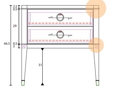 Выполнена из массива дерева и высококачественного МДФ класса Е1. Цвет фурнитуры - латунь. Ящики оснащены доводчиками для плавного закрывания.
