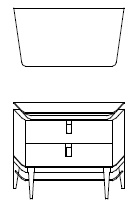 Прикроватная тумбочка на прямых ножках выполнена в стиле модерн. Оснащена двумя ящиками с прямоугольными ручками. Трапециевидная форма и скругленные углы подчеркивают стиль модели.