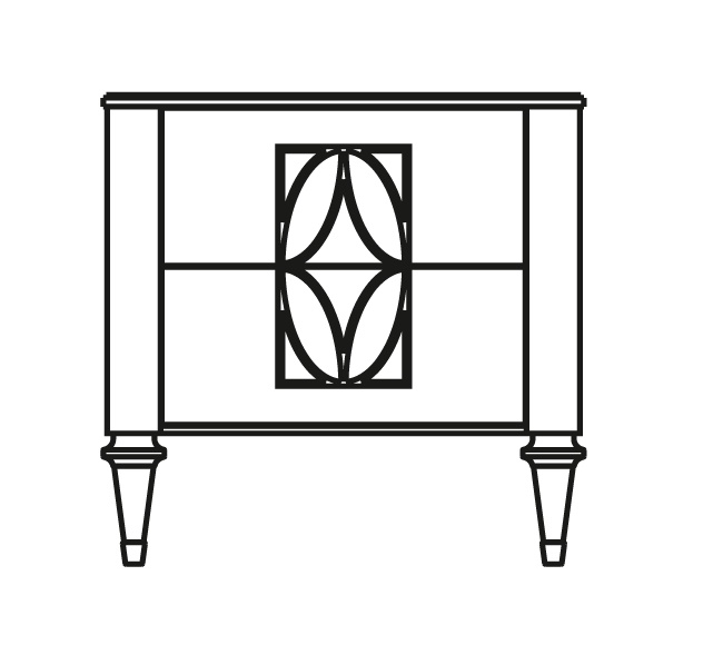 Прикроватная тумбочка на фигурных точеных ножках выполнена в стиле ар-деко. Оснащена двумя выдвижными ящиками с механизмом открывания push to open. Фасады ящиков декорированы гравировкой. Простые четкие линии и скругленные углы подчеркивают элегантность модели.