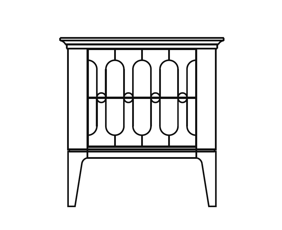 Прикроватная тумбочка на прямых ножках выполнена в стиле ар-деко. Оснащена двумя ящиками с гравировкой на фасадах и системой открывания push to open.