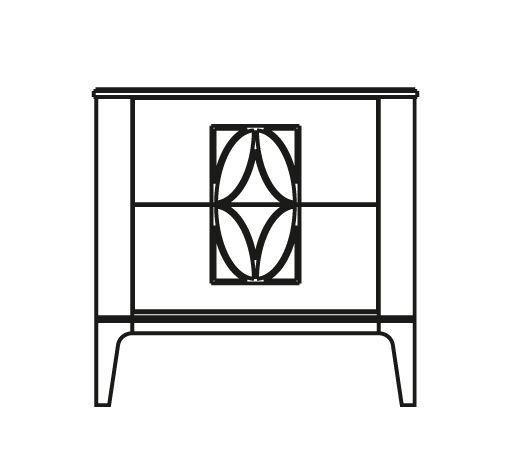 Прикроватная тумбочка на прямых ножках выполнена в стиле ар-деко. Оснащена двумя выдвижными ящиками с механизмом открывания push to open. Фасады ящиков декорированы гравировкой. Простые четкие линии и скругленные углы подчеркивают элегантность модели.