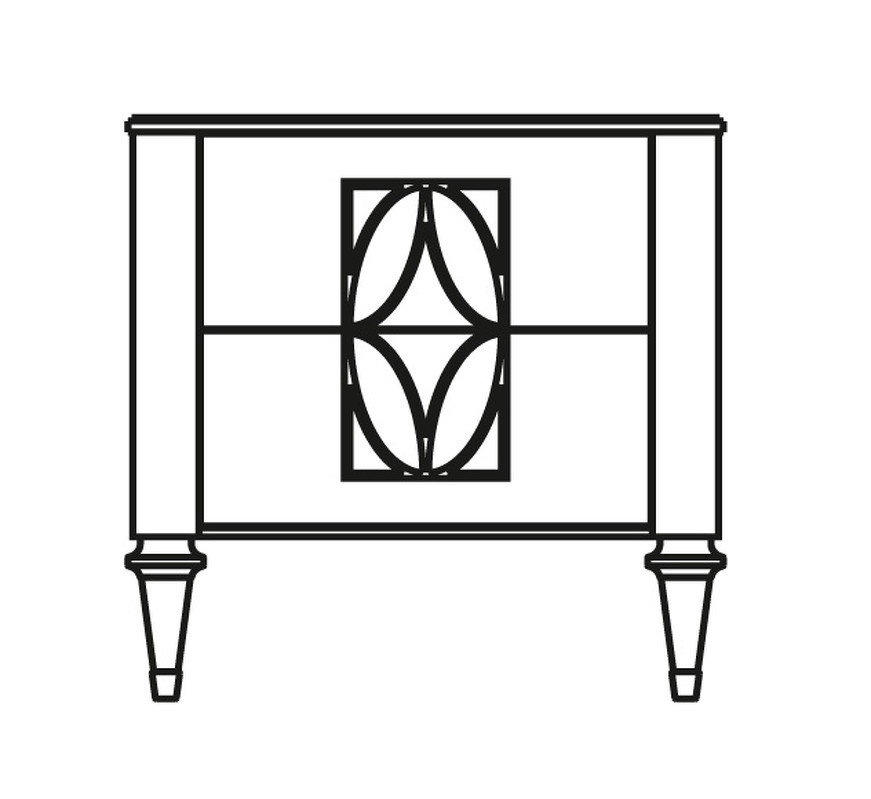 Прикроватная тумбочка на прямых ножках выполнена в стиле ар-деко. Оснащена двумя выдвижными ящиками с механизмом открывания push to open. Фасады ящиков декорированы гравировкой. Простые четкие линии и скругленные углы подчеркивают элегантность модели.