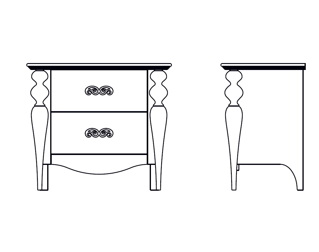 Прикроватная тумбочка на высоких ножках выполнена в стиле ар-деко из массива корабельной сосны и высококачественного МДФ высокой плотности. Передние ножки фигурные, задние - прямые. Оснащена одним выдвижным ящиком с направляющими испанского производителя.