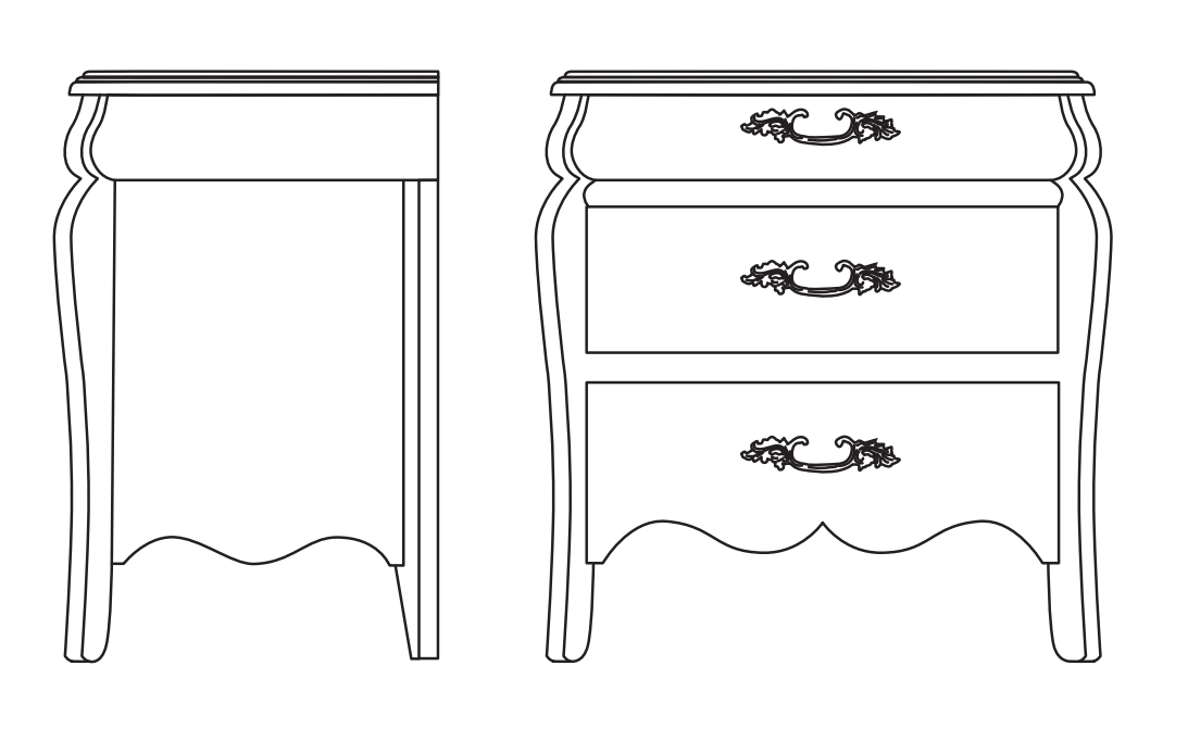 Прикроватная тумбочка имеет три ящика.