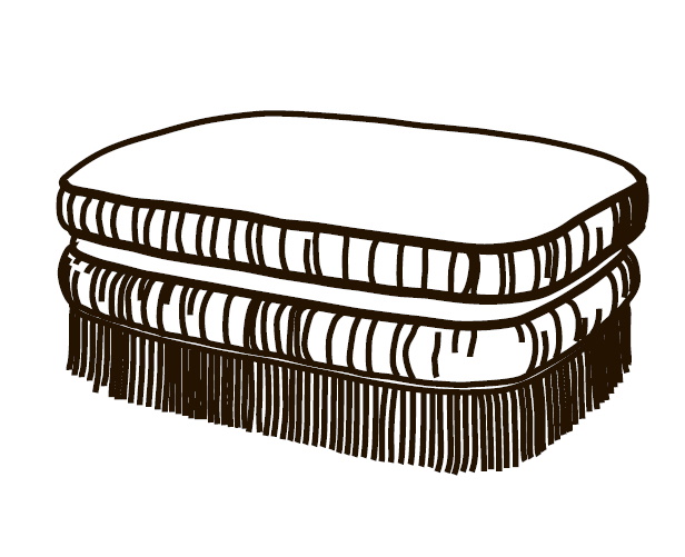 Прямоугольный пуфик выполнен в классическом стиле. Основание скрыто декоративной "юбкой"-бахромой.