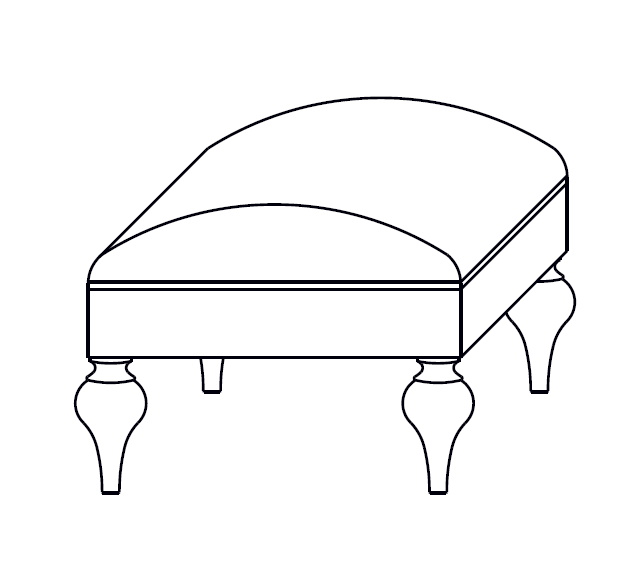На фото ножки в другой отделке. Пуфик на фигурных ножках выполнен в стиле Ар деко. Мебель выполнена из массива корабельной сосны, поставляемой из Германии и Чили, а также высококачественного мдф высокой плотности. Возможные варианты отделки - ткань и экокожа из ассортимента фабрика (цена по запросу).