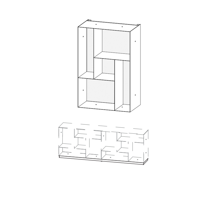 Размер каждого модуля 58 см х 87 см глубиной 35 см.