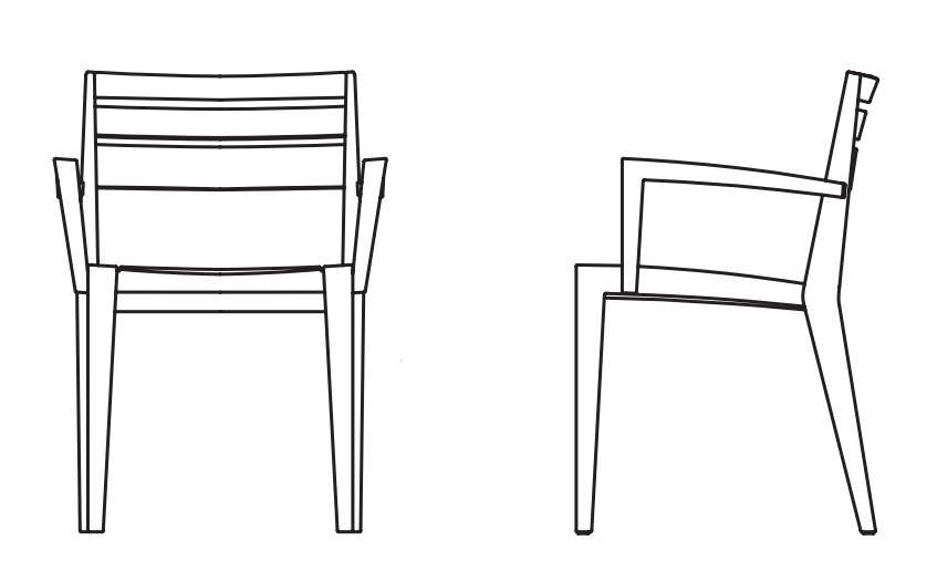 Стул с подлокотниками сделан из натурального тика. Все материалы прекрасно отводят влагу, что делает изделие подходящим для использования на открытом воздухе.