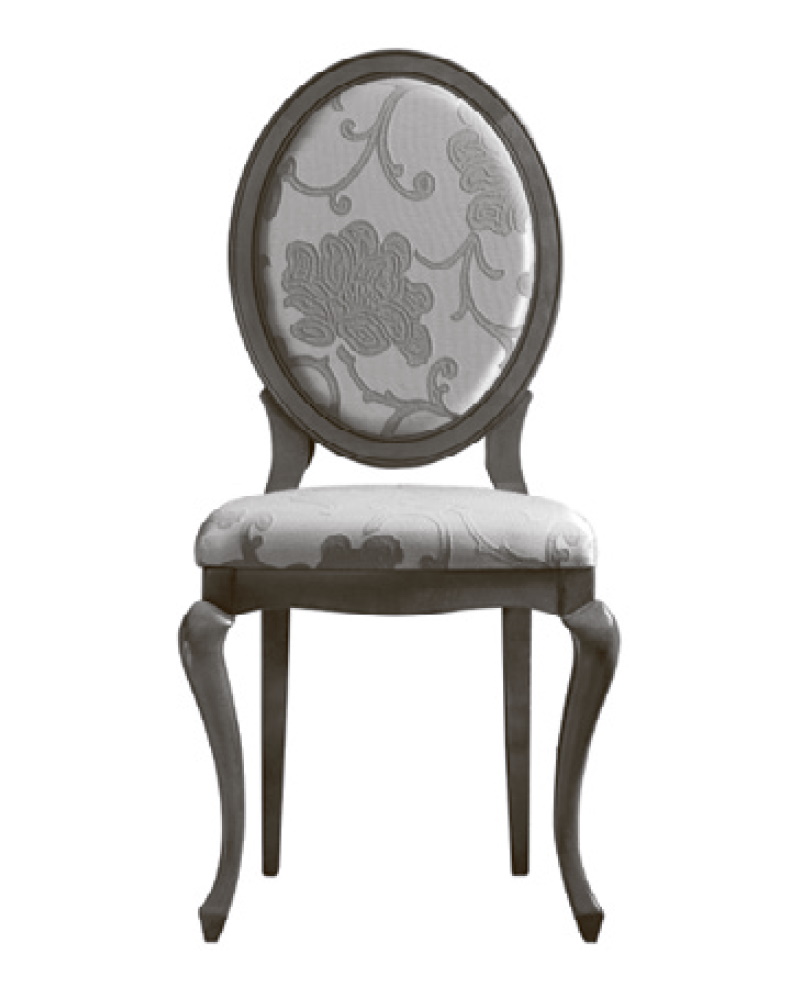 Стул с медальонной спинкой выполнен в классическом стиле из массива бука. Опирается на ножки кабриоли, задние ножки слегка наклонены.
