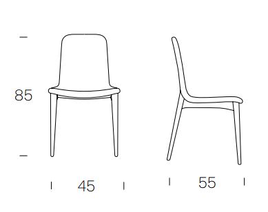 Стул с прямой спинкой выполнен в современном стиле. Обтянут кожей нубук. Четкие линии подчеркивают простоту и элегантность модели.