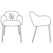 Стул c подлокотниками на металлическом каркасе обтянут натуральной кожей из ассортимента фабрики. Наполнитель с эффектом памяти memory.