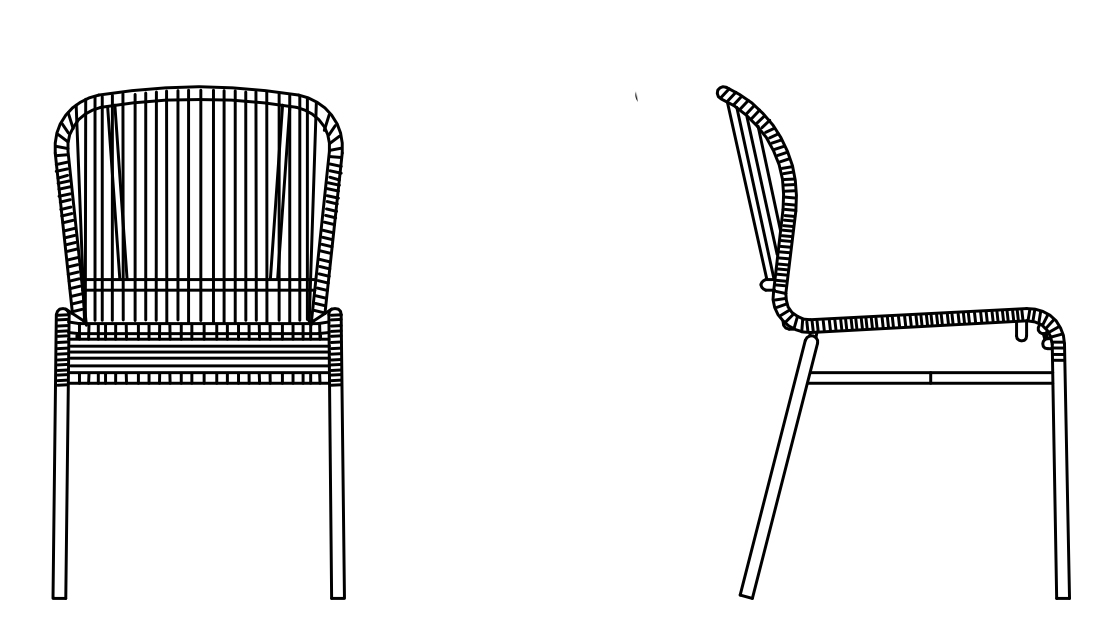 Стул имеет алюминиевую структуру с порошковым покрытием. Декорирован красивым вертикальным плетением. Все материалы прекрасно отводят влагу, что делает изделие подходящим для использования на открытом воздухе.