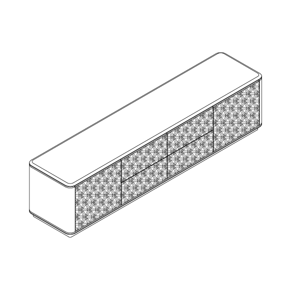 Дизайн восхищает эксклюзивным узором на черных фасадах мебели, выполненным методом тиснения. У тумбы есть четыре ящика и две дверцы, за которыми находятся еще по две полки в каждой секции.