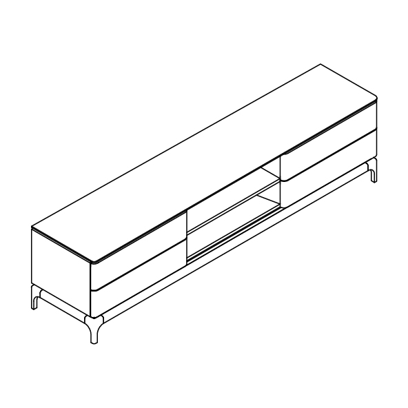 У тумбы 4 ящика со скрытыми направляющими и системой открывания push to open (открывание нажатием).