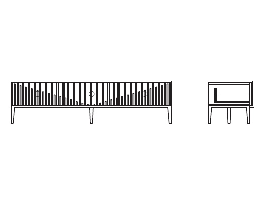 Тумба оснащена тремя выдвижными ящиками c механизмом открывания push to open. Фасады декорированы симметричным реечным узором.