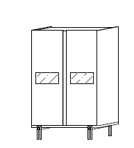 Витрина с двумя дверками и металлическими ножками выполнена в современном стиле.
