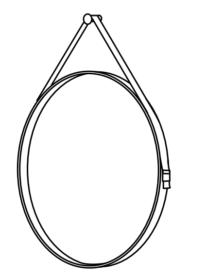 Зеркало изготовлено из МДФ и покрыто лаком. Ремень выполнен из белой кожи, пряжки - из хромированного металла. Крючок состоит из никелированной металлической втулки и полированной крышки из нержавеющей стали с внешним диаметром 5 см.